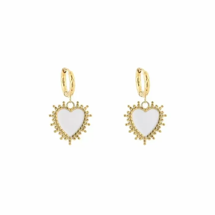 Deze oorbellen in hartvorm, omlijst met een subtiel goud randje, combineren romantiek en stijl. Mooi glanzend, licht om te dragen en een echte eyecatcher bij elke outfit – van dagelijks tot speciaal.