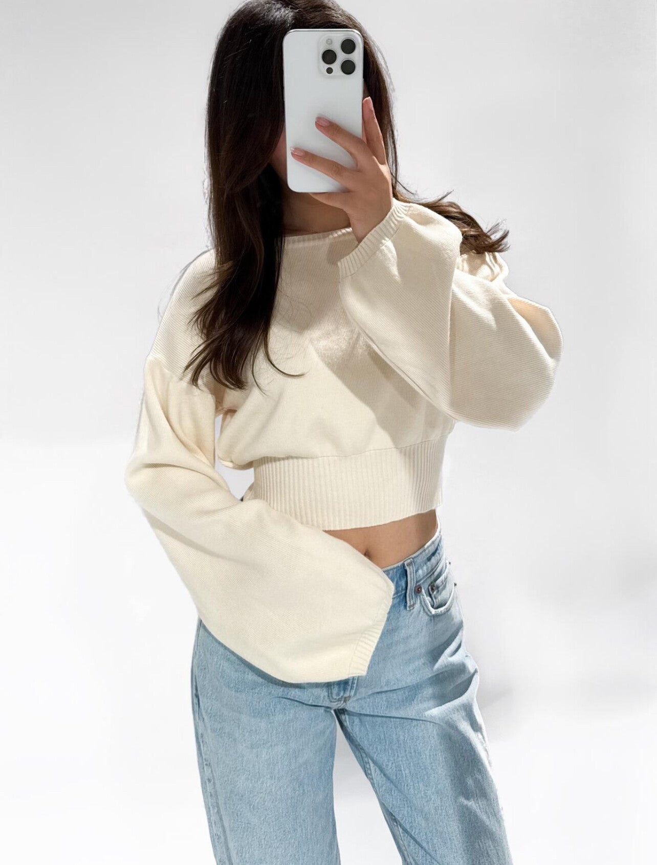 Deze trendy cropped sweater is een echte musthave voor jouw kledingkast. De sweater heeft een comfortabele pasvorm. De elastische taille laat hem mooi aansluiten en de wijdere mouwen geven een moderne touch.